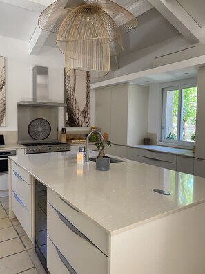 Nous avons séjourné 3 semaines dans cette superbe maison, très appropriée pour une famille nombreuse et très fonctionnelle. Chacun avait son intimité. Grand jardin avec piscine très agréable, superbe décoration et très belles prestations. La maison est suffisamment éloignée de la route pour être au calme, et la situation est idéale (Aix en provence, la côte pour faire des escapades à la journée, et commerces peu éloignés). Les propriétaires ont su être très réactifs et à l'écoute, allant même jusqu'à changer dans la journée la climatisation tombée en panne en pleine canicule !