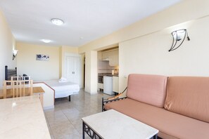 Ce studio est un appartement confortable et pratique. Equipé de tout ce dont vous avez besoin pour passer un séjour agréable. Elle dispose d'un lit double. Une cuisine équipée et pratique. Une salle de bain complète. Un salon, TV et une salle à manger extérieure. Depuis ce séjour lumineux, vous pouvez accéder à la terrasse avec de belles vues sur la mer. Vous pourrez également profiter du soleil et des couchers de soleil incroyables.