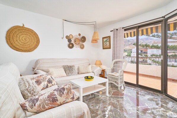 Situé à Almuñécar, l'appartement Lily de 110 m² peut accueillir jusqu'à 6 personnes avec ses 3 chambres et 2 salles de bain. Vous profiterez de pièces spacieuses entièrement climatisées, d'une cuisine privée récemment rénovée et entièrement équipée, d'une salle de bain moderne, du Wi-Fi adapté aux appels vidéo, d'une télévision, d'un lave-linge et d'un accès par ascenseur. L'appartement offre une vue sur la mer et la montagne ; les familles avec enfants apprécieront le lit bébé et la chaise haute fournis. L'immeuble dispose d'un accès et d'un intérieur sans marches pour votre confort.