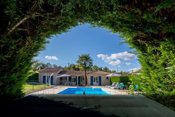 Tout est réuni pour passer de très bonnes vacances... la maison est spacieuse, agréable à vivre, complètement équipée....il ne manque rien...on se sent chez nous... la piscine est très agréable, très grande... seul bémol cest un fond plat de 1,5m ce qui peut-être gênant avec des enfants en bas âge. Sinon rien à dire.. bains de soleil parasol et piscine sécurisée. Tout est conforme à la description. Nous avons vraiment passé un très bon séjour et nous recommandons ce lieu de vacances.