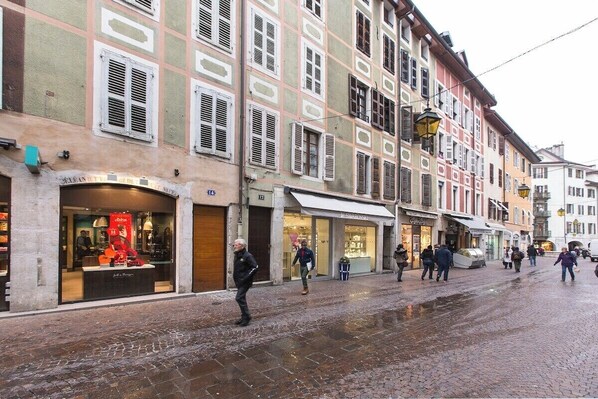 Tous les commerces sont dans la rue. Tous les magasins aussi, c'est toujours animé très vivant et le lac est à 2 pas. Il est recommande de ne pas utiliser sa voiture pendant le séjours pour découvrir et profiter de la ville a pied.