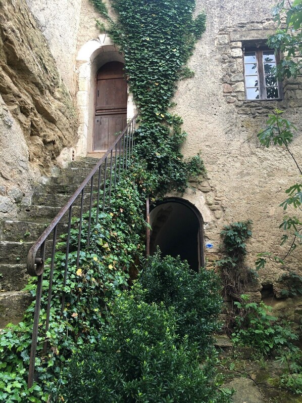 il s'agit de deux maisons de village qui ont été reliées, dont une partie date du XVIIème siècle. La maison est construite sur le rocher visible depuis la cour nord. elle s'organise sur 3 niveaux. Elle a été entièrement réhabilitée en 2021 à l'intérieur pour lui donner le confort nécessaire. Cette maison permet a chacun d'être très indépendant grâce à de multiples espaces, intérieurs et extérieurs, pour travailler, lire, prendre le soleil, marcher et partager les repas. Les pièces de vie, cuisine-séjour-salon sont très spacieuses. Les chambres ont leur propre salle de bain, trois d'entre elle ont des WC.