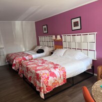 Très déçu. C'est trop cher pour le prix payé. Nous avions la chambre 2. Impossible de passer entre le côté droit du lit et le mur à cause de la climatisation. Pas de table ou d'étagère pour un simple smartphone de ce côté. Isolation phonique inexistante : des gens parlaient sur la terrasse jusqu'à 2h00! Ils sont passés sur TV ensuite jusqu'à 5h...et comme l'isolation n'avait pas changé entre temps.