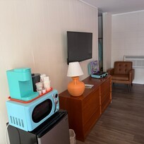 La chambre est petite et surtout mal organisée, contrairement à tous autres les hôtels de notre séjour. La literie n'est pas terrible non plus. Celà n'est pas rattrapé par la décoration (il n'y a rien qui rappelle les années 60), contrairement à celle de l'accueil.