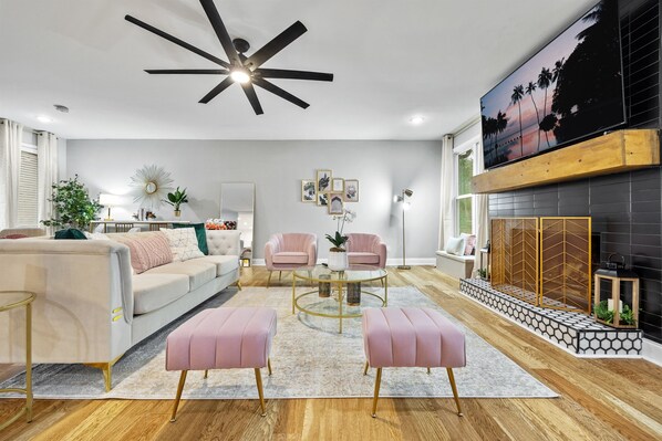 ✔ Spring-Inspired Living & Dining Room – Seats up to 10 guests