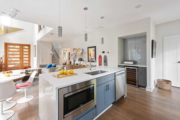🍽️ Sleek dining area & chef’s kitchen with wine fridge