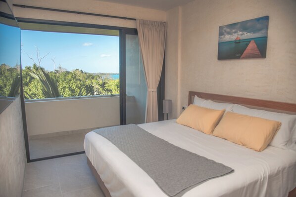 Les chambres climatisées de cet appartement incluent un coffre-fort et un sèche-cheveux. Les chambres donnent sur un balcon.