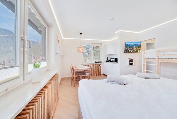 L’appartement de 27 m² à Bad Reichenhall, en Bavière, accueille jusqu’à 4 personnes. Il comprend 1 chambre avec lit double et lits superposés, ainsi qu’une salle de bain. La cuisine entièrement équipée dispose d’une machine à café. Vous profitez du Wi-Fi haut débit adapté à la visiophonie, d’une télévision privée, de la vidéo à la demande, d’un espace de travail, d’un accès de plain-pied, d’un intérieur sans barrières, d’un ascenseur privé et d’une vue sur les montagnes.