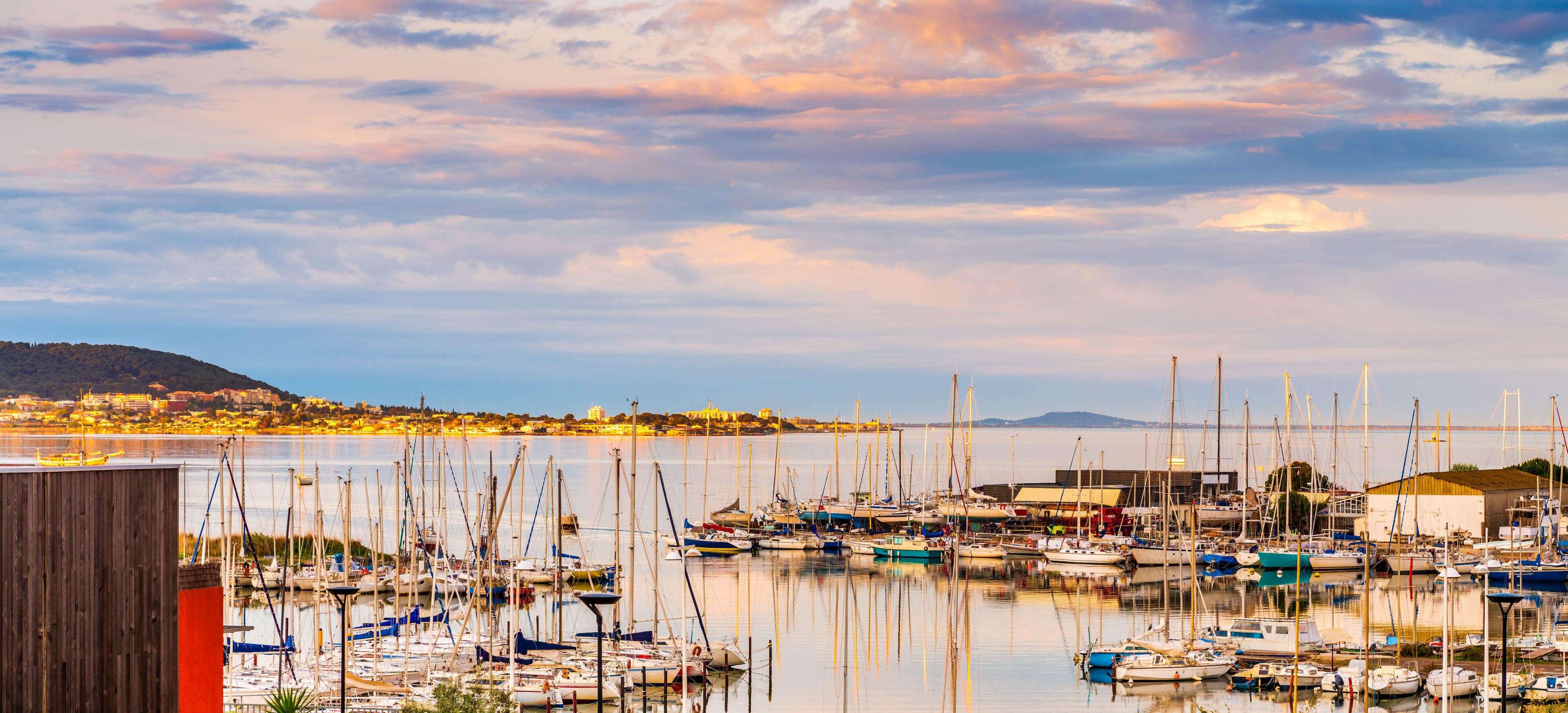 Balaruc-les-Bains (Hérault) - coucher de soleil sur l'étang de Thau. Au loin, le Mont Saint-Loup d'Agde et MÚze.