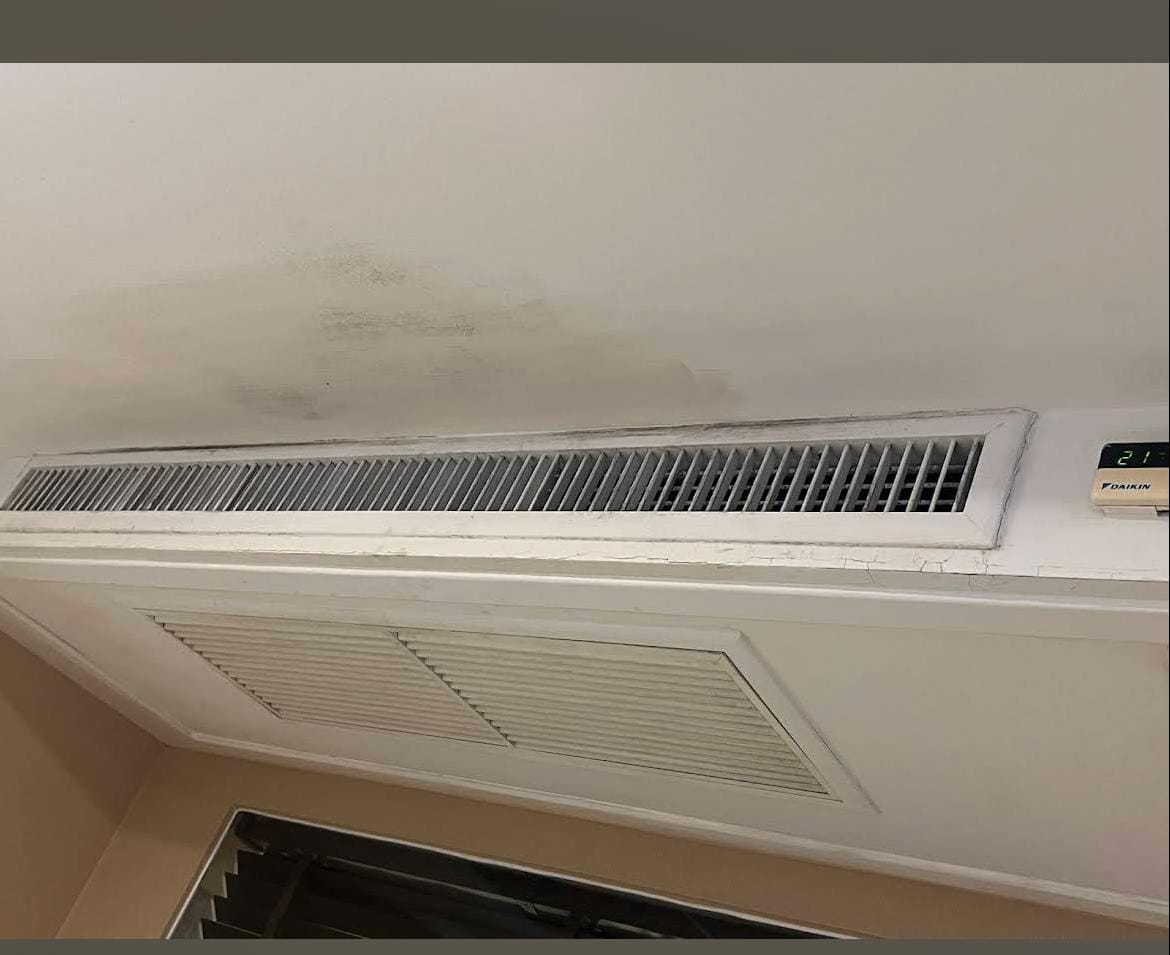I can see mold on the ceiling, ac vent & corners of the room. This is a health hazard.