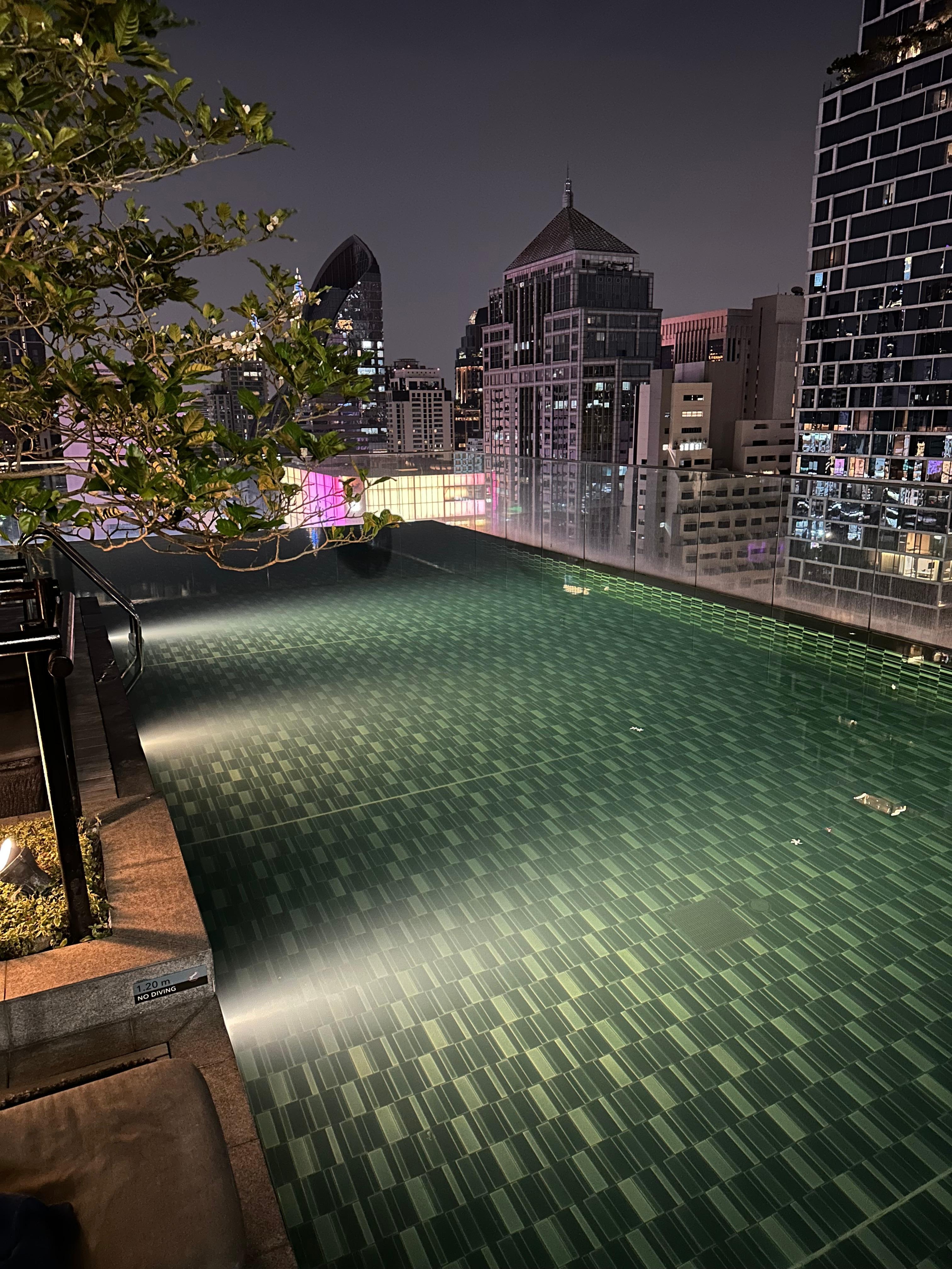 Nice view from rooftop pool, but pool and pool area need more light in the evening. Excellent breakfast, but very crowded during peak time. Central location, yet far enough from the main road, so not too loud at night. Convenience store right outside, malls with good food options nearby.