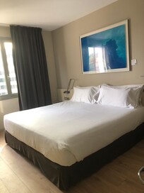 The building is nice, clean and (superficially) modern. Rooms are large enough, and, when the window is closed, very quiet. Of course, if you open it, you hear the street noise, but, as far as I noticed, it’s not *that* unbearable (not much traffic, but we were there during August, and maybe many locals were off to the coast). More annoying is the noise made by the A/C, which is quite high, at least when you try to go to sleep. We had to switch it off every night.