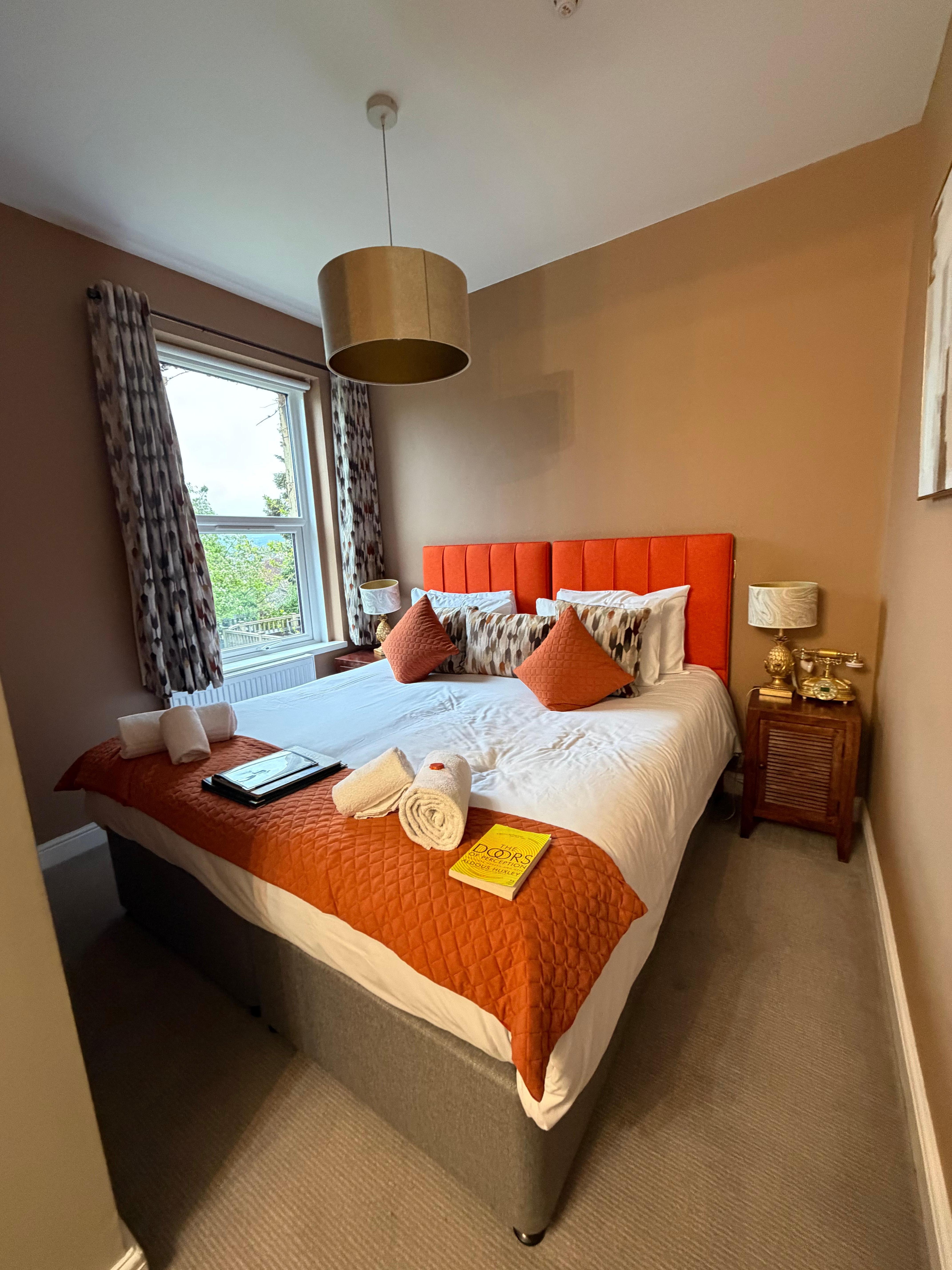 Full breakfast options available, including regular or vegetarian Full English, Eggs Benedict, and crepes, or a continental breakfast for a lighter option. Room was very clean, spacious, beautifully decorated, and had lovely garden views and direct access to a small patio and garden area.