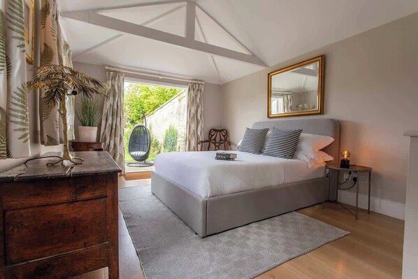 When arriving at this gorgeous property you enter via the garden gate into the magical walled secret garden. The cottage is nestled in the corner with a generous patio outside the front - perfect for lazy summer evenings and breakfasts in the sunshine.