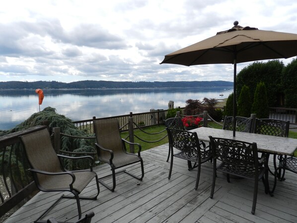Cette belle, 2 étages, maison de style Cape Cod-est perché sur 100 'du secteur riverain de la rive nord de Hood Canal. Une cloison généreuse offre beaucoup d'espace de pont découvert, avec une petite cour. Les petits bateaux peuvent être attachés sur la plage, qui descend à un banc d'huîtres abondante à marée basse. De plus grands bateaux peuvent être lancés sur le quai publique d'un mile sur la route, et amarré sur une bouée à proximité. Le Hood Canal est béni avec l'eau la plus chaude dans le Puget Sound, avec les huîtres savoureuses. Profitez de la eaux chaudes baignade, la plongée, le ski nautique, le wakeboard, le tube, pêche au crabe et la pêche.