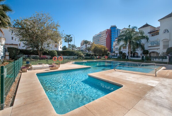 Appartement 'Benalmar Bajo C' avec piscine partagée, Wi-Fi et climatisation