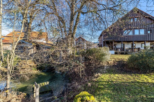 Appartement spacieux et idyllique au bord du ruisseau avec vue sur la montagne et Wi-Fi