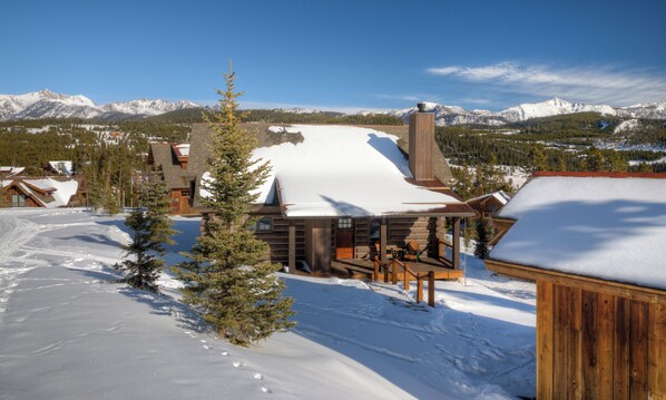 Panoramic forest and mountain views await from this 4 bedroom, 3 bathroom Big Sky Powder Ridge cabin with ski-in/ski-out access to the biggest skiing in America. This cabin boasts high-end amenities, elegant furnishings and modern conveniences throughout.