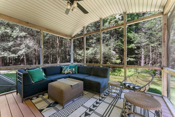 3 Season Room perfect for playing games and hanging out (heater available during cooler months)