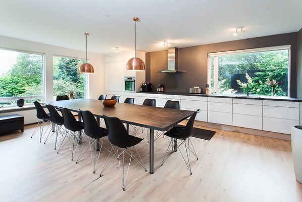 We spent 3 nights with extended family touring the area and enjoying the fact that we had a beautiful and comfortable place to finish the day over dinner. We had 8 adults but could have had 10 comfortably. The owners are friendly and attentive. We recommend this property for anyone's Iceland visit.