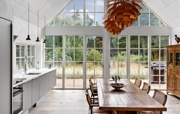 Cette maison accueillante est faite pour vous permettre de vous évader du quotidien. De grandes baies vitrées laissent entrer beaucoup de lumière du jour chaude et créent une atmosphère lumineuse, tout en vous offrant une vue magnifique sur la verdure. Passez une soirée cinéma détendue sur le canapé, rassemblez-vous autour de la grande table à manger pour jouer aux cartes ou cuisinez ensemble dans la cuisine moderne.