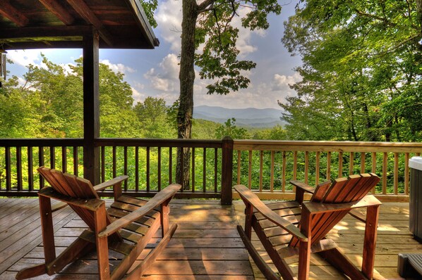 Grand View Cabin est assis à 2200 pieds. Il regarde les sommets de Rich Mountain Wilderness à 4 100 pieds. Les cabines similaires ont un prix supérieur de 25% à notre cabine.