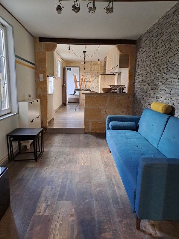maison de ville, au centre de la Brède. 1 chambre avec lit double, salle de douche attenante cuisine tout équipée salon wc et buanderie avec lave linge jardin clos, possibilité de garer 1 véhicule terrasse et salon de jardin, plancha