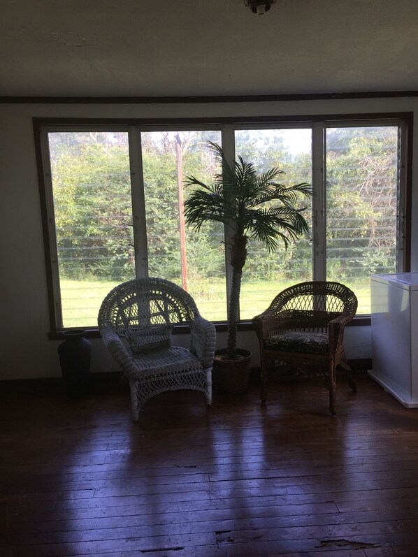 Immense cheminée en pierre et plafonds avec poutres apparentes de 10 pieds vous donnent l'impression d'être dans un ancien manoir anglais situé sur notre paisible ferme de 15 acres. Vraiment un cadre champêtre. Salon avec son immense canapé en cuir et son jeté en peau de mouton, coin bureau avec WiFi, coin salon pour le thé et la conversation, salle à manger séparée avec mur en pierre de la cheminée du salon. Cuisine complète et même une véranda. La chambre est chaleureuse et confortable avec des poutres apparentes et une tapisserie utilisée comme ombre pour la fenêtre. Un pont au niveau principal et un balcon au niveau supérieur pour une vue nocturne du ciel. Le deuxième étage dispose de 2 chambres avec lits queen .. Un couple pourrait être assez confortable en utilisant simplement la chambre du premier étage, mais toute la maison peut accueillir dix personnes sur trois lits queen-size et deux lits queen-size pneumatiques. Le premier étage a une 1/2 salle de bain et une salle de bain complète, qui comprend une douche et une baignoire complète, au niveau supérieur. Si vous avez besoin d'encore plus d'espace, parlez-nous de la location d'une ou plusieurs des autres unités à proximité.