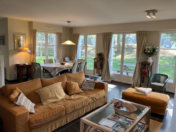 Cadre exceptionnel et calme absolu en bordure du fairway. A 900 mètres du centre du village, sa plage, sa base nautique, son centre équestre, tennis, ses deux golfs, sa forêt, ses dunes, magasins et restaurants. Charmante villa lumineuse, fonctionnelle, tout confort, 3 chambres dont l'une avec en plus un lit cage. Idéal pour 6 personnes. Le jardin autour de la villa clôturé, est situé en face du 9ème trou. Calme absolu à peine troublé par le bruissement du vent dans les pins. Wifi sur place. Le Touquet et Boulogne à 20', Abbaye de Valloires