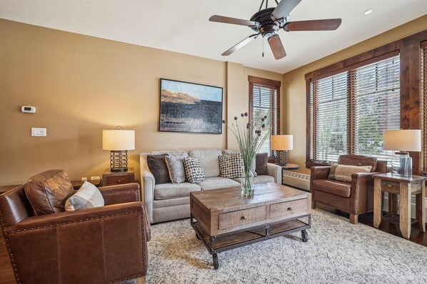 This unit was perfect for our family of 4. Our 10 and 12 year olds loved the double-sized bunk beds with a TV in the room. The open concept isn't huge but has a very comfortable living area and is either recently updated or on the newer side, as everything was in great shape. It is on the ground level, so you will get sound from people walking by, but it didn't feel like an overly high-traffic area in the summer, so it was not a problem. We found the location at the top of the main street excellent, and we loved that there was a hot tub steps from our door. My only suggestion would be a few more kitchen staples (baggies, foil, etc).