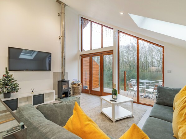 Living area: Smart TV, Woodburner, Bi-Fold Doors Leading To Decked Area.