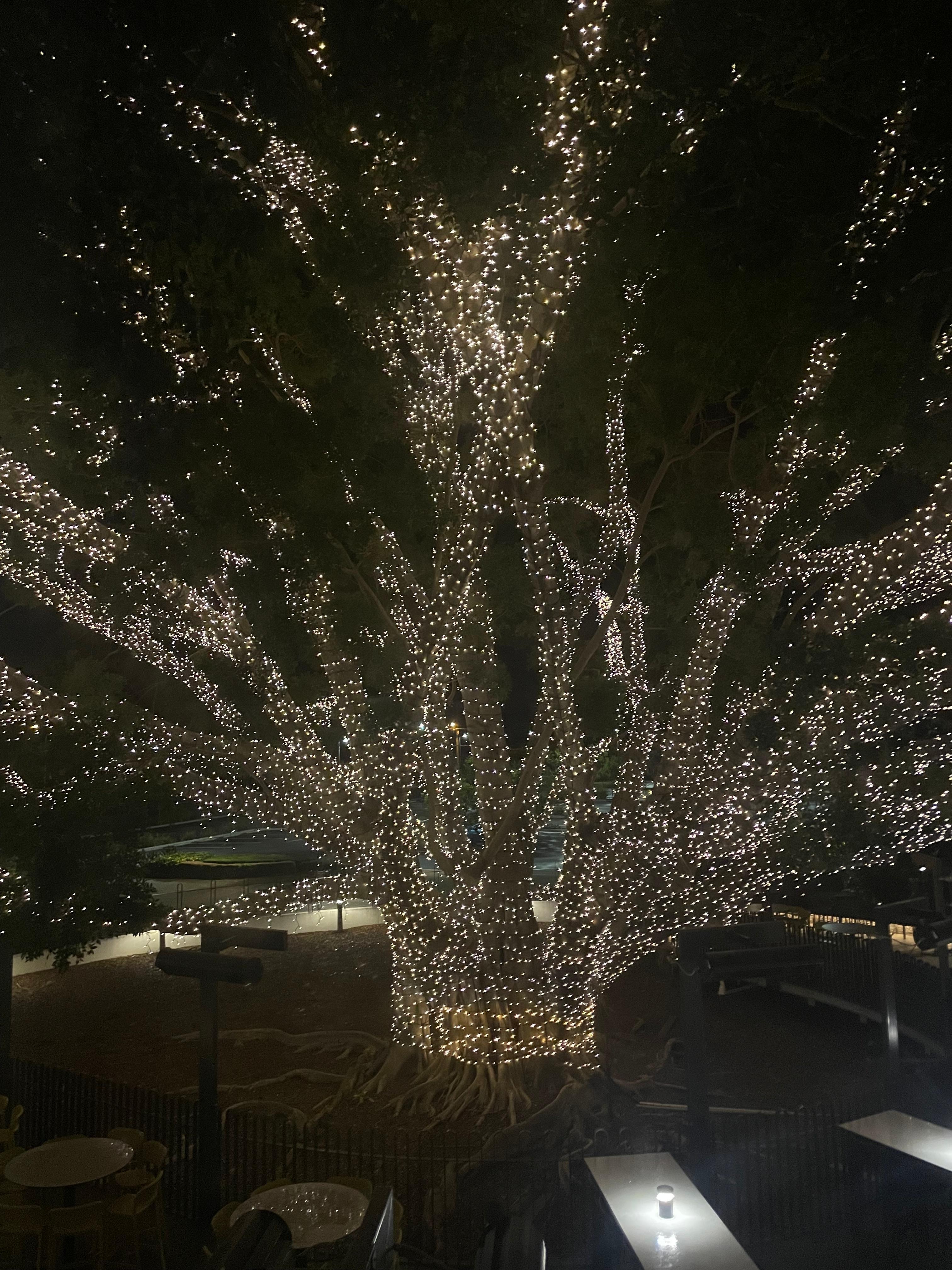 Beautiful clean room with a very comfortable bed and good sized shower head. The mini bar included was delightful (yet not all used). The lighting is a standout as well. Such a beautiful ambiance with no horrendous LED’s. Absolutely delicious continental breakfast is included with option to purchase different menu as well as room service or dine in the restaurant options. Oh and the view of the stunning tree covered in fairy lights is amazing. Will definitely be staying again!