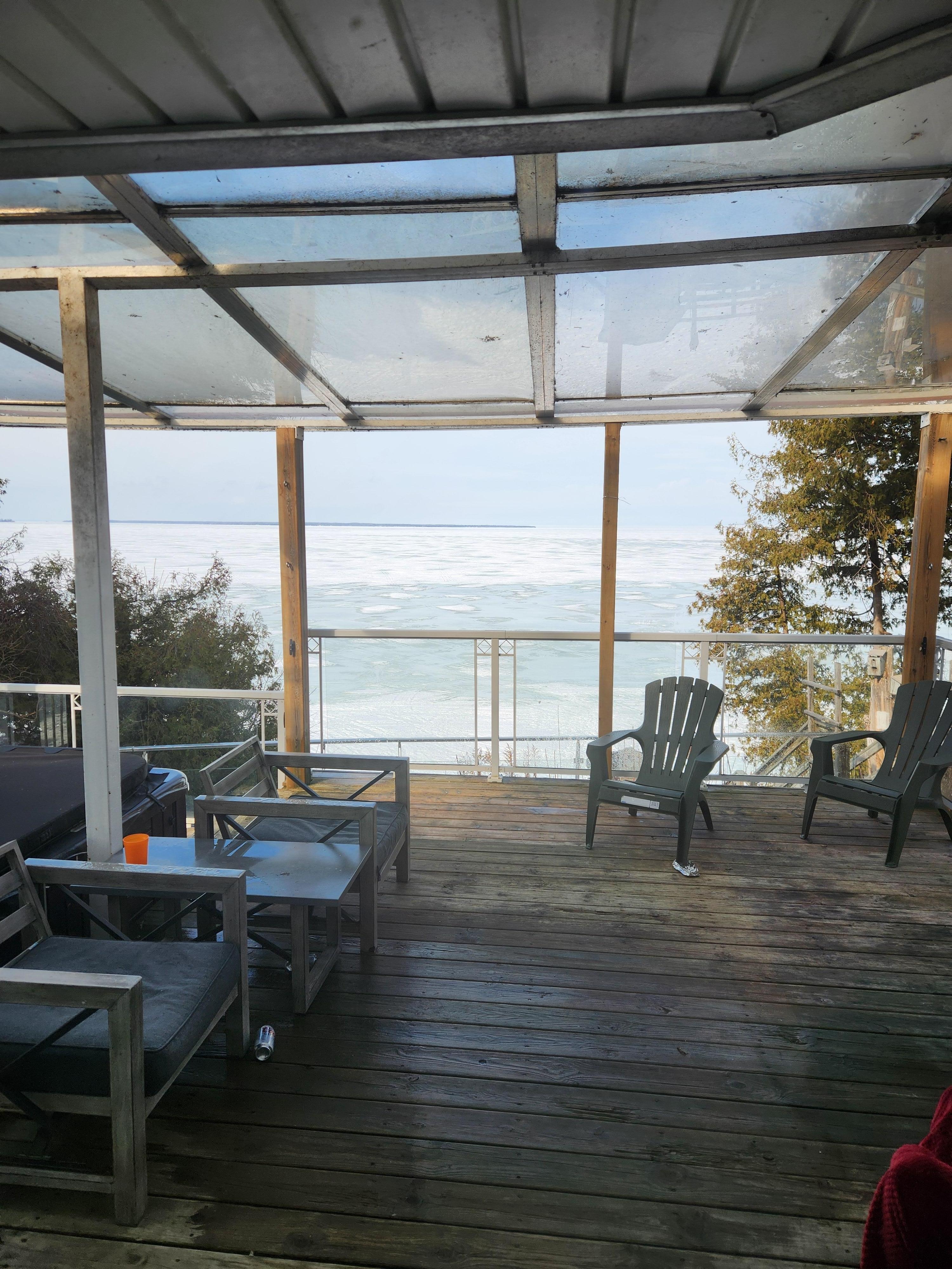 Spacious lakefront cottage at Lake Simcoe! The cottage has 67 feet private and direct access waterfront to Lake Simoce. It is about an hour drive from Toronto. Spectacular lake & sunset views. Lake Simcoe offers great swimming, fishing, boating & water sport opportunities. The cottage consists of 5 bedrooms with 8 beds (5 beds and 1 bunk bed with 3 level), 2.5 washrooms, sauna room, living room with fireplace, dining room, kitchen, & laundry room. Walk out to a spacious patio complete with hot tub, BBQ grill & patio furniture. And the fire pit is located at the backyard.