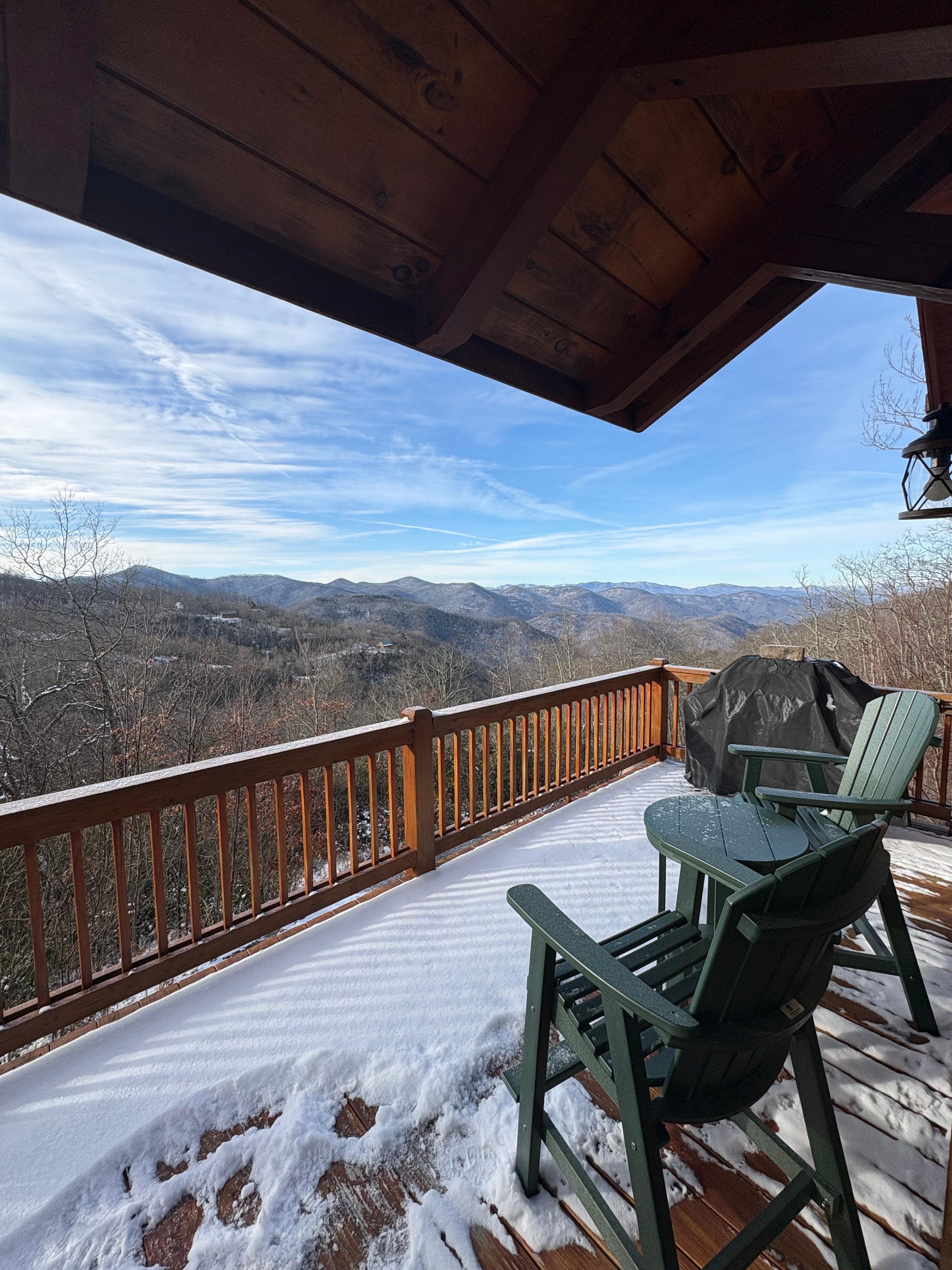 It’s just a fantastic property with the best views from any cabin I’ve ever stayed in. Cabin is super clean, in great shape, exceeded my expectations. The panoramic view of the mountains from the deck is amazing. Wife and I just loved it. The firepit was great too. The drive to cabin is very steep and with gravel roads and I’m glad I was in my 4x4 truck. That was part of the fun!