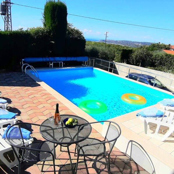et kommfor maison avec une vue magnifique sur la mer et avec piscine chauffée.