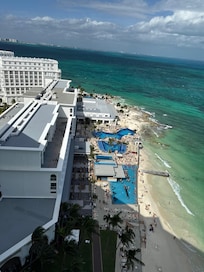 Le cadre est magnifique ! La vue de la chambre est juste incroyable ! Personnel serviable et très gentil mise a part deux trois personnes ! Habitué des Riu nous l'aimons pour ces prestations mais je trouve que cette hotel était un peu moindre plus du tout d'emplacement pour les fumeurs Mise a part un petit coin et un banc a l'entré (avant le Riu adulte only surtout nous permettais de fumer partout ), le buffet a volonté est plus petit moins soigné moinsnde choix très peu de déco Riu Tequila a playa del carmen fesais des décorations incroyable ! Plus de décoration non plus dans la chambre sauf une fois ! (Salle de bain tellement humide d'ailleurs quel dégoulinait d'eau jusqu'à en effrité le plafond )Les restaurants sont moyen mis a part le steackhouse mais allez y de bonheur sinon il n'y a pas de place ! Exposition plein soleil jusqu'au milieu de l'après midi puis plus aucun soleil, piscines fermer a 19h ! Pour un adulte only c'est très tôt ! Nous avons connu des piscines ouverte H24 ! Et l'ambiance du riu calme aucune soirée ( seulement si vous vous déplacez dans un autre Riu ) juste des soirées quiz ou bingo ! Si vous cherchez le calme effectivement sa l'est ! Heureusement que le centre ville est proche et permet des animations mais c'est un budget en plus .
