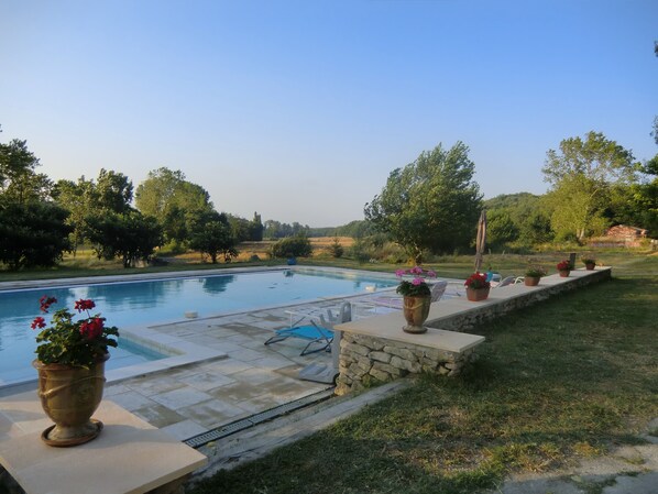 Der Pool ist sehr gross und sauber und es stehen genügend Liegen, ein Sonnenschirm und ein paar Schattenplätze zur Verfügung. Es gibt sogar ein Poolhaus, in dem man einige Luftmatratzen etc. findet sowie eine Dusche und Toilette.