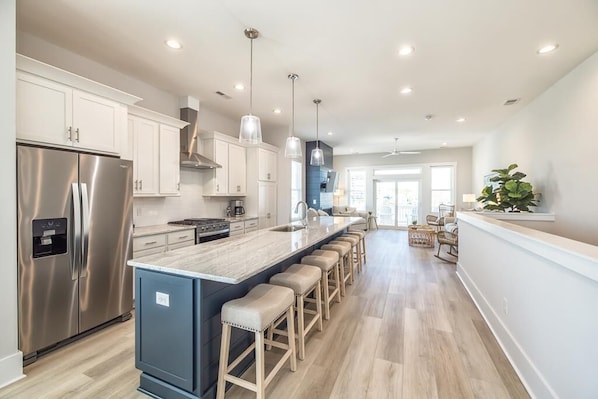 Kitchen: Fully equipped, Stainless steel appliances, Bar seating for 6