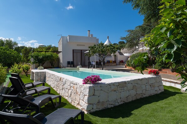 Cette location de vacances propose un espace extérieur privé avec une piscine, un jardin, un barbecue et une douche extérieure.
