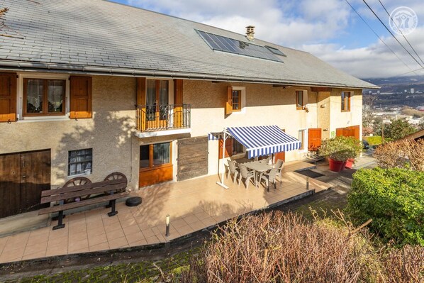 Ferme de pays de 1865 rénovée à 4km du centre-ville & 9km de la plage (lac du Bourget). Secteur résidentiel dominant la cluse chambérienne. Bon confort. Large terrasse sud (28m²). Vaste propriété de prairie naturelle (13000m²). Charmant cadre champêtre. Toute proximité commerces & services. Ski La Féclaz/Savoie Grand Revard 24 km (ski alpin et ski de fond), le Granier 27 km, le Désert d'Entremont 28 km, Aillon-le-jeune 29 km, le Margériaz 36 km. Baignade & plage 9 km (lac du Bourget). Piscine 3 km. Patinoire 5 km. Maison individuelle. Gîte sur 2 niveaux. Rez-de-chaussée : séjour-cuisine, coin salon avec TV, 1 chambre avec accès par 2 marches (1 lit 2 personnes 140x190 cm) avec salle d'eau privative (douche - WC indépendant). 1er étage : 2 chambres (1 lit 2 personnes 140x190 cm/ 2 lits 1 personne 90x190 cm), salle d'eau (douche avec WC), salon avec TV, espace bureau avec bibliothèque. Balcon + terrasse + terrain (13 000m²) privatifs. Draps inclus + lits faits à l'arrivée. Ferme de 1865 rénovée à 4km du centre ville de Chambéry, capitale historique des Ducs de Savoie, ville d'Art et d'Histoire. Arrêt de bus à 500m. A 24km des pistes de la station familiale de la Féclaz (site "nordique" de ski de fond de renommée mondiale). A 9km de la plage (lac du Bourget, plus grand lac naturel de France). Idéalement situé pour rayonner hiver comme été entre les Parcs Naturels régionaux de Chartreuse et du Massif des Bauges (ski alpin et nordique, rando, cyclo...). A 11km des Thermes de Challes-les-Eaux. Aix-les-Bains, célèbre cité thermale à 17km. Nombreuses activités culturelles, sportives et ludiques en toute proximité. Vaste propriété de 13000m² en prairies naturelle ! La campagne en pleine ville ! Idéal pour un séjour en famille comme pour une clientèle d'affaires !
