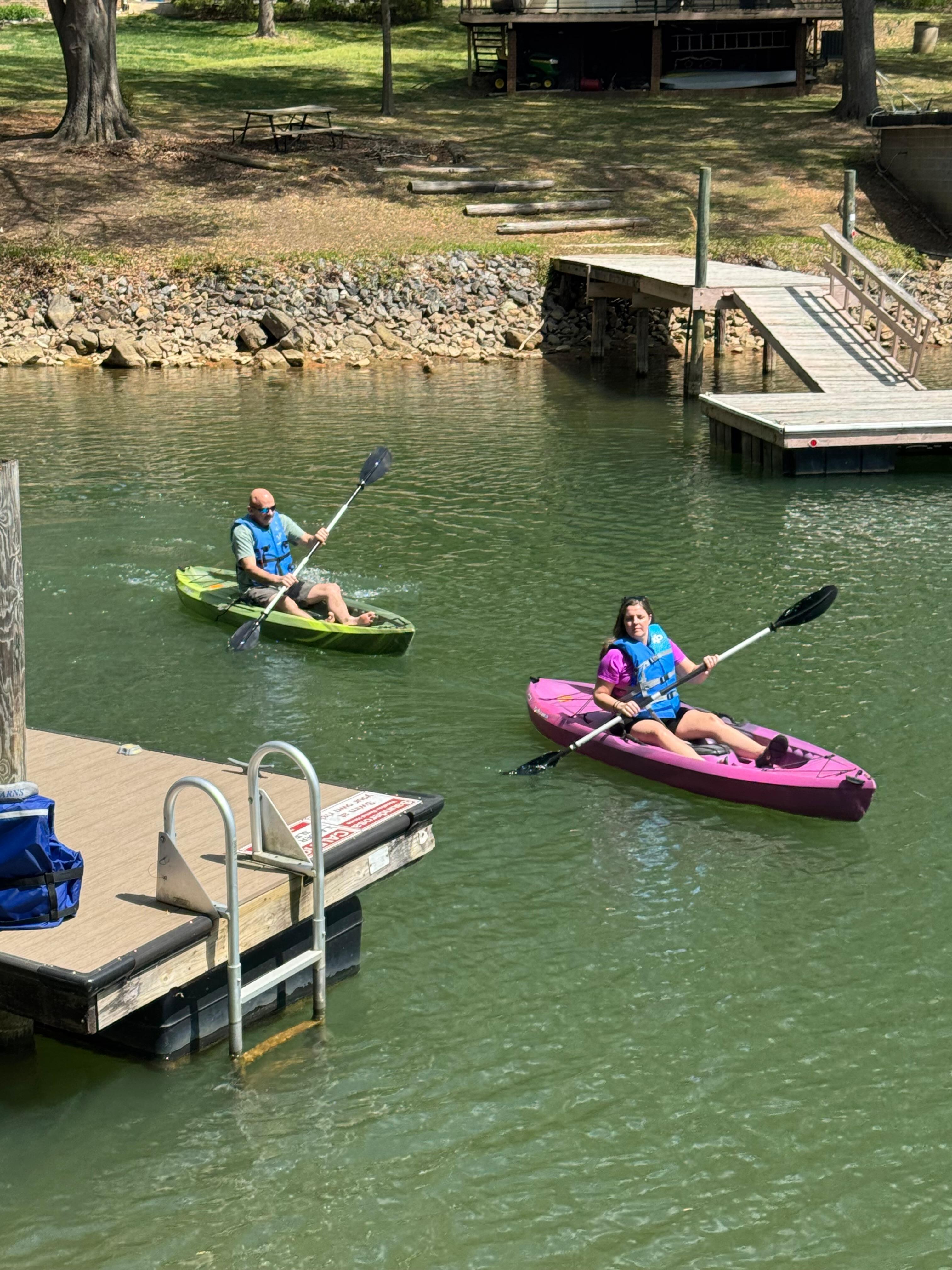 Apportez votre propre bateau ou jet-skis, il y a des rampes de mise à l'eau à proximité. Nous avons DEEP WATER toute l'année, donc pas de soucis sur une crique sèche. Ou vous pouvez louer un bateau à la journée ou à la semaine; Lake Norman Marine & autres se spécialisent dans la location de pontons ou de jet ski. Les sociétés de location locales livreront à notre quai. Parfait pour ceux qui veulent se réveiller et sauter sur leur bateau pour une journée de plaisir sur le lac Norman. La zone du quai a également le petit lac parfait projeté dans un kiosque où vous pouvez jouer à des jeux et profiter de votre «boisson» préférée. Si vous ne voulez pas naviguer, vous pouvez toujours pêcher, nager ou flotter dans cette crique confortable et sûre, ou même louer un kayak. On nous dit que la pêche est fantastique à quai! Nous avons également des pédalos, 2 kayaks et 1 paddleboard pour votre plaisir.