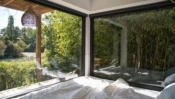 Lodge haut de gamme avec bain nordique privatif au bord du canal Ă 1h15 de Paris