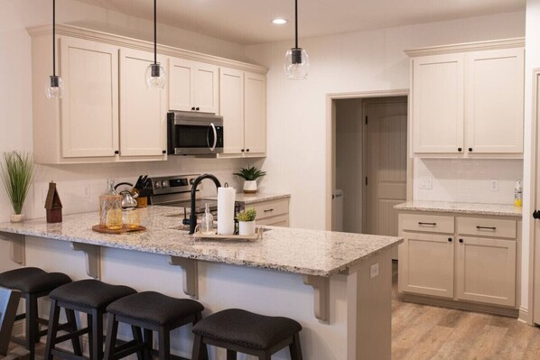 4. Fully Equipped Kitchen: Channel your inner chef in the fully equipped kitchen featuring stainless steel appliances, granite countertops, and all the essentials you need to whip up delicious meals. The breakfast bar offers additional seating for casual dining.
