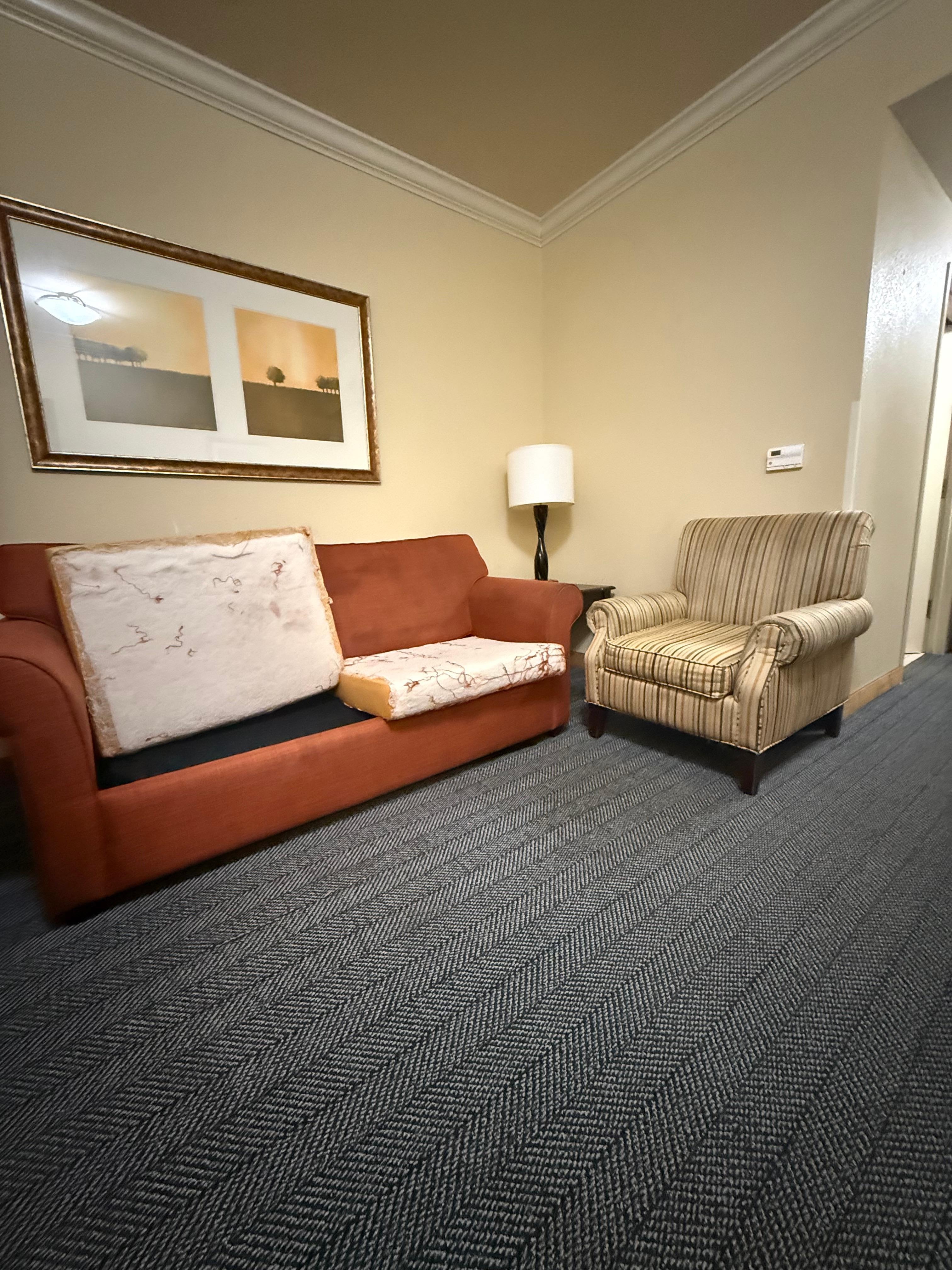 The staff were soooo nice! Really A+ for them. The rooms (we ended up moving to a different one) were gross. Toothpaste stains on the vanity, discolored/stained carpet, furniture, tub, doors, walls, everything. Thankfully the sheets were clean and fresh smelling and bed was comfy or we would have left. Hotel seemed super full, but rooms were actually quiet. “Breakfast” both mornings were scant. Some white bread slices in a baggie, yogurt, or the cheapest apples money can buy was all that was left by 8:15 am… oh and in a 4 foot deep pool, you couldn’t see your feet it was so cloudy. Location was good though.