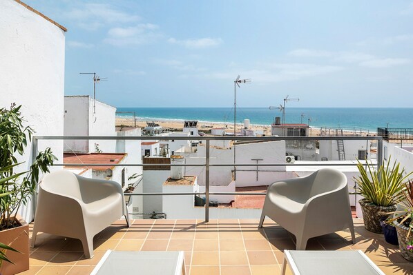 Au centre de la destination de vacances populaire de Cadix, vous trouverez la maison Casa Boqueron, qui impressionne les clients avec ses terrasses blanches et son emplacement fantastique dans l'ancien quartier de pêche, près de la vieille ville et de la plage. La maison de vacances confortable dispose d'un salon/Salle à manger, d'une cuisine bien équipée, de 2 chambres à coucher (une avec un lit double, une avec 2 lits simples) ainsi que d'une salle de bains et peut accueillir 4 personnes. Les équipements comprennent également le Wi-Fi, la télévision par satellite et une chaise haute. Depuis le 2e étage, vous avez accès au point fort de l'hébergement : ici, vous trouverez deux terrasses de toit partiellement couvertes et meublées. Depuis la terrasse de 25 m², vous accédez à la deuxième terrasse (30 m²) par un escalier - toutes deux offrent une vue imprenable sur les toits de la ville et directement sur la mer. Le supermarché le plus proche se trouve à seulement 100 mètres de l'établissement et un grand nombre de boutiques, de restaurants, de bars et de cafés sont à 200 mètres. La belle plage de sable de la ville, Playa de los Bateles, se trouve à seulement 400 m ou à 7 minutes de marche de l'hébergement.
