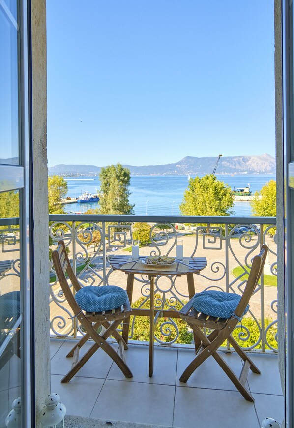 From the balcony there is a magnificent view over the old harbor and the new fort.