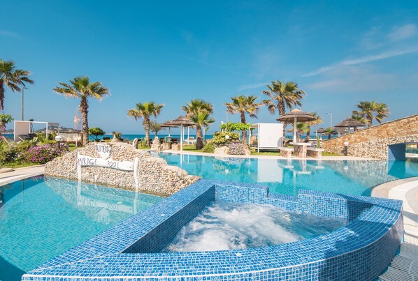 Le point fort de cet hébergement est son balcon privé. Un espace extérieur partagé, composé d'une piscine face au front de mer, d'un bain à remous, d'un jardin, d'une piscine pour enfants et d'une douche extérieure, est également à votre disposition.