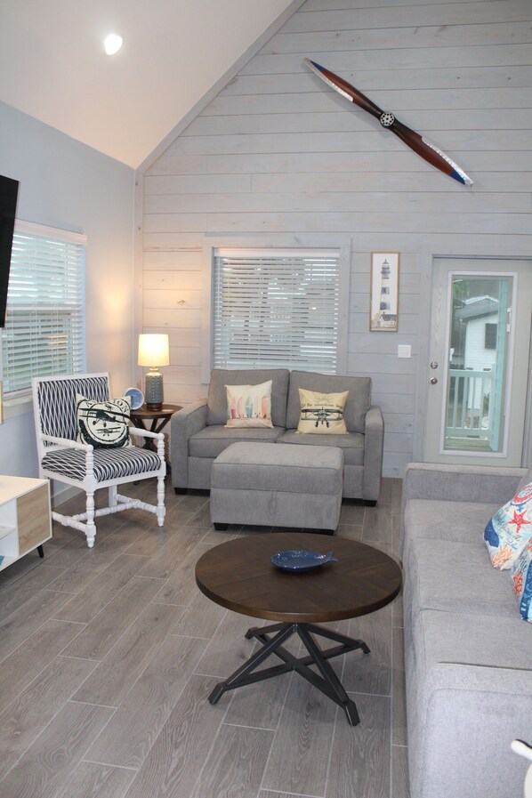 Downstairs living area is a nice escape and includes a TV, table and chairs, and a multigame table! An additional loft area upstairs features a separate couch and TV for movie nights!