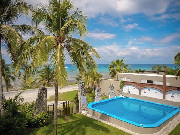 Experience modern comfort in this sleek 2-bedroom condo, perfectly situated just 100 meters from the beach. This stylish second-floor retreat features two queen beds and contemporary finishes, making it perfect for small families or couples seeking a high-end coastal escape. Enjoy the luxury of swimming in the crystal-clear ocean right out front, followed by a dip in the shared tropical pool. End your days relaxing as you witness Cozumel’s breathtaking sunsets over the Caribbean. We look forward to hosting your perfect island getaway.