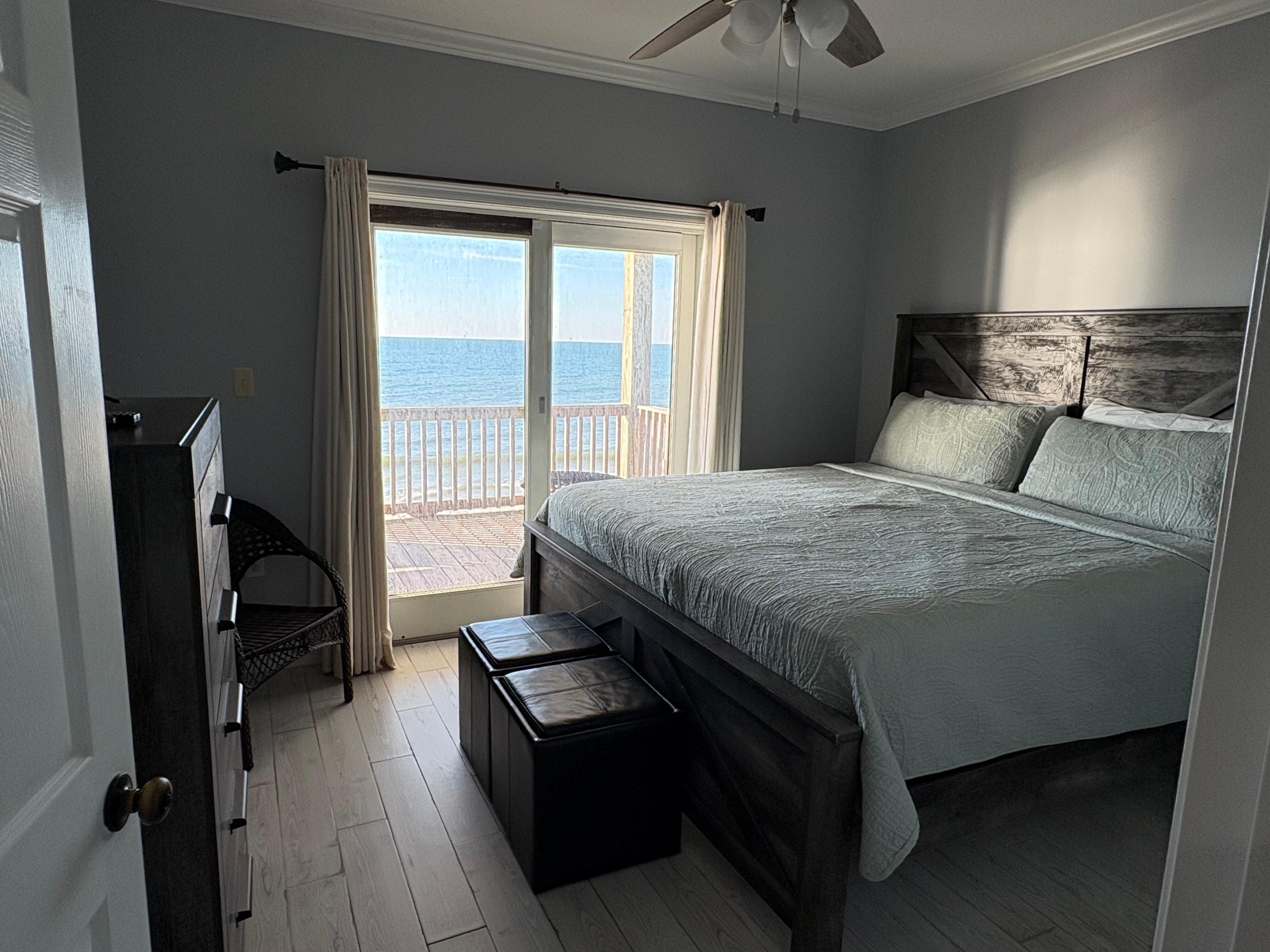 KeyWester is a fabulous oceanfront 4/2 right on the Gulf Of Mexico. Enjoy beachfront living where you can sit on the back deck and hear the waves crash right in front you! Drink coffee at sunrise and beverage of choice at sunset with this perfectly located pet-friendly beach house. The home has an open floor plan with view of the Gulf from almost every room in the house. The property does NOT provide an outside grill. The property enjoys two gulf side King bedrooms that both walk right out onto the beachfront deck.